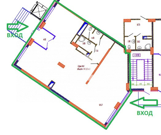 Помещение площадью 145.6м2 , открытая планировка, находится на первом этаже. Два входа , со стороны внутреннего двора и зоны парковки. Все коммуникации центральные, можно организовать мокрые точки.